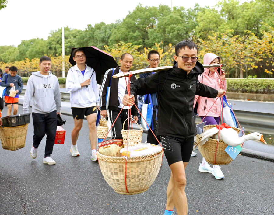 比赛结束后,一些村集体组织为自己的优胜选手赐予大奖——选手肩挑扁担,装着大白鹅等土味十足的奖品回家,全程喜气洋洋。