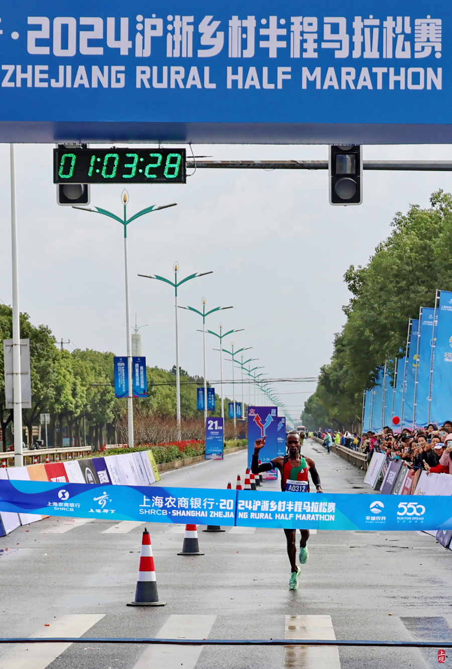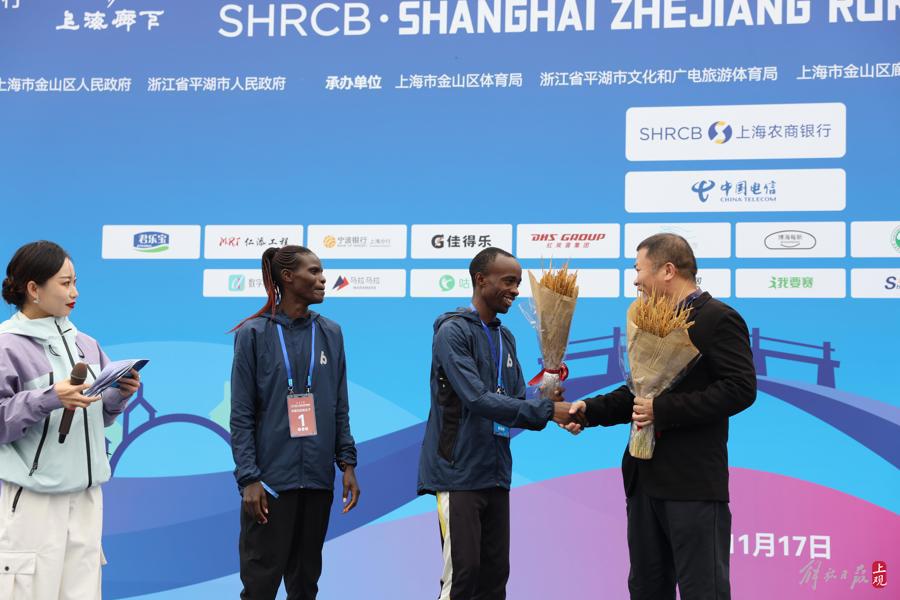 沪浙马拉松在金山廊下开跑,冠军被授予一把稻穗