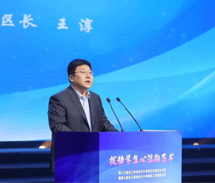 王淳代表奉贤区政府对长三角地区中小学班主任基本功大赛和德育论坛的成功举办表示热烈祝贺,对三省一市教育部门、长三角地区中小学德育工作联盟做出的努力表示衷心的感谢。
