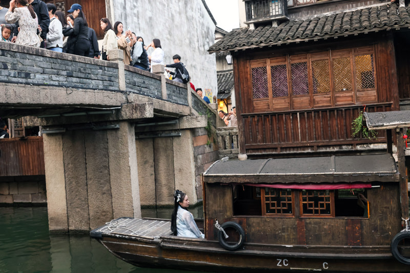 乌镇桥上的游人与乘船的游客,成为彼此眼中的风景。