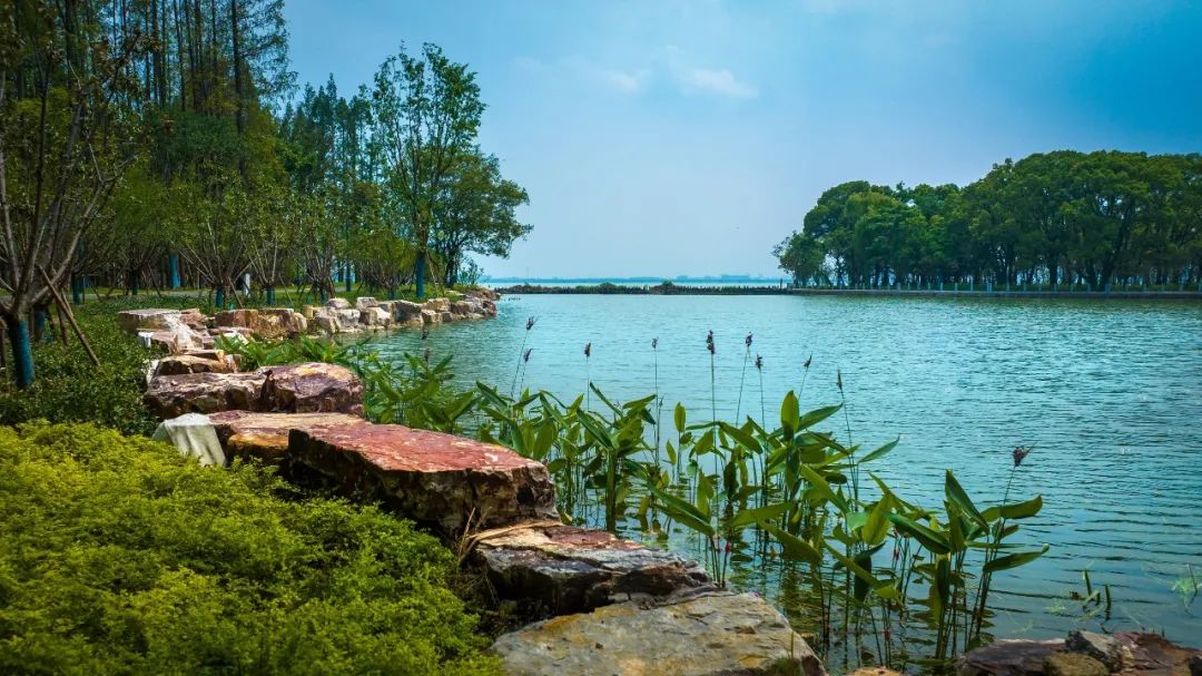 元荡位于沪苏省际边界,是示范区“一河三湖”重要跨界水体中的核心湖泊,总面积12.9平方公里,其中3平方公里位于上海青浦,9.9平方公里位于江苏吴江。元荡生态岸线修复及功能提升工程是示范区跨界水体联保共治的样板项目,采用水系连通、岸坡整治、水源涵养与水土保持等生态治理措施,通过三期建设完成23.89公里(其中江苏吴江境内17.69公里,上海青浦境内6.2公里)生态岸线修复。项目打造了多样化、开放的滨水空间,实现岸线贯通、步道贯通、防洪一体化,打造绿色生态廊道,同步建设景观步道和骑行道,配套元荡驿站、元荡小馆、望帆驿等休憩场所。
