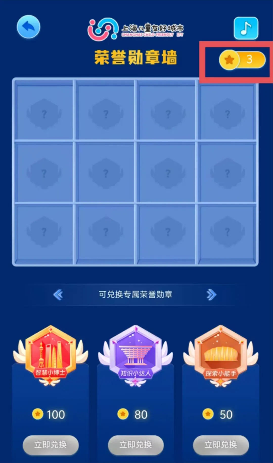 2、积分满一定数额后可兑换相应分值的专属荣誉勋章,点击“立即兑换”后,该勋章将自动显示在“荣誉勋章墙”上;
