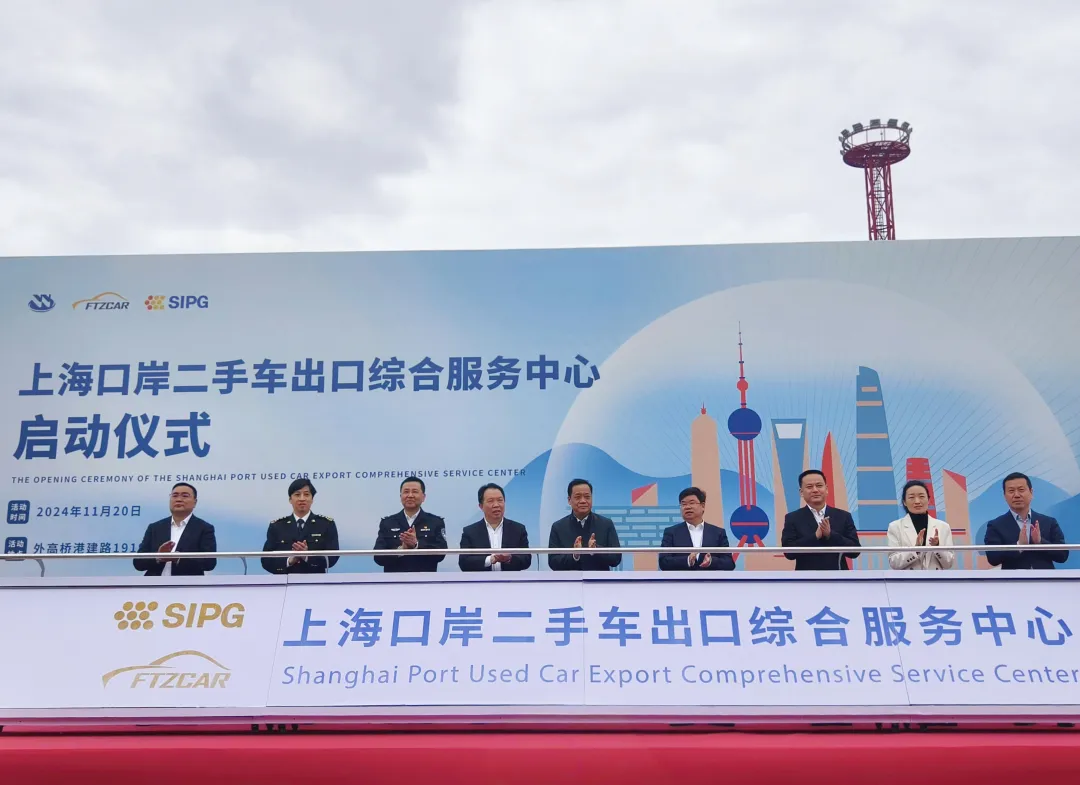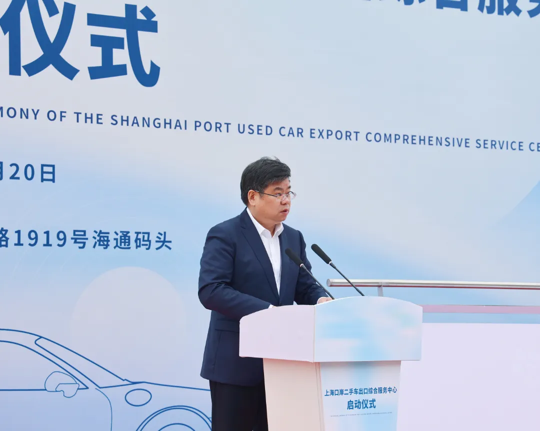 11月20日,上海口岸二手车出口综合服务中心(以下简称“服务中心”)在上海海通国际汽车码头落成并举行启用仪式,市政府副秘书长刘平、市商务委副主任申卫华等相关部门和单位代表参加。