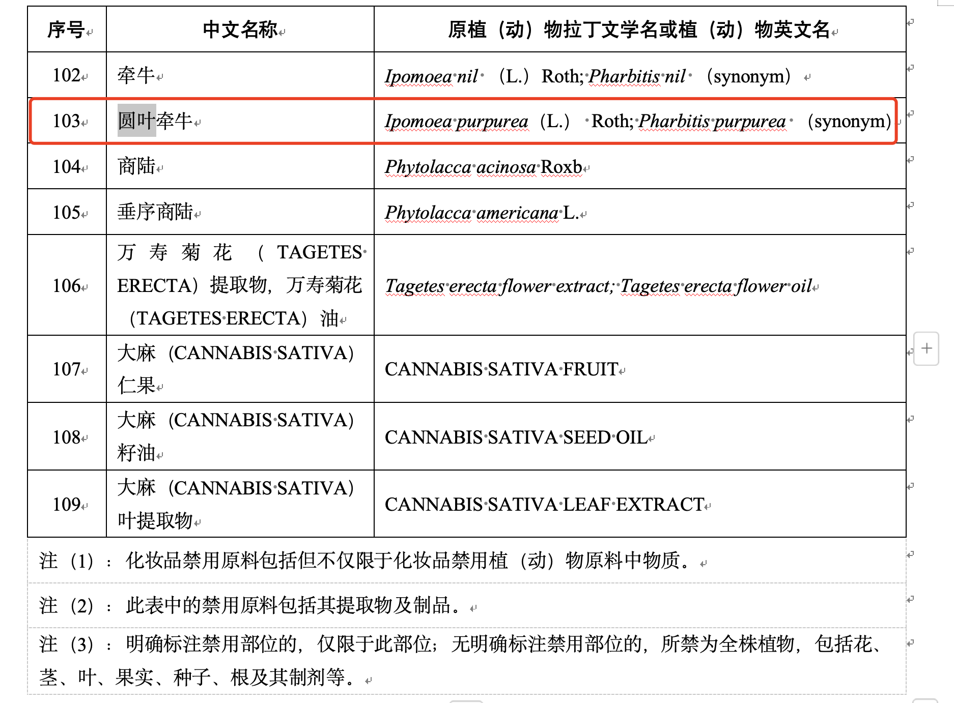 来源于2021年5月28日更新的化妆品禁用植(动)物原料目录