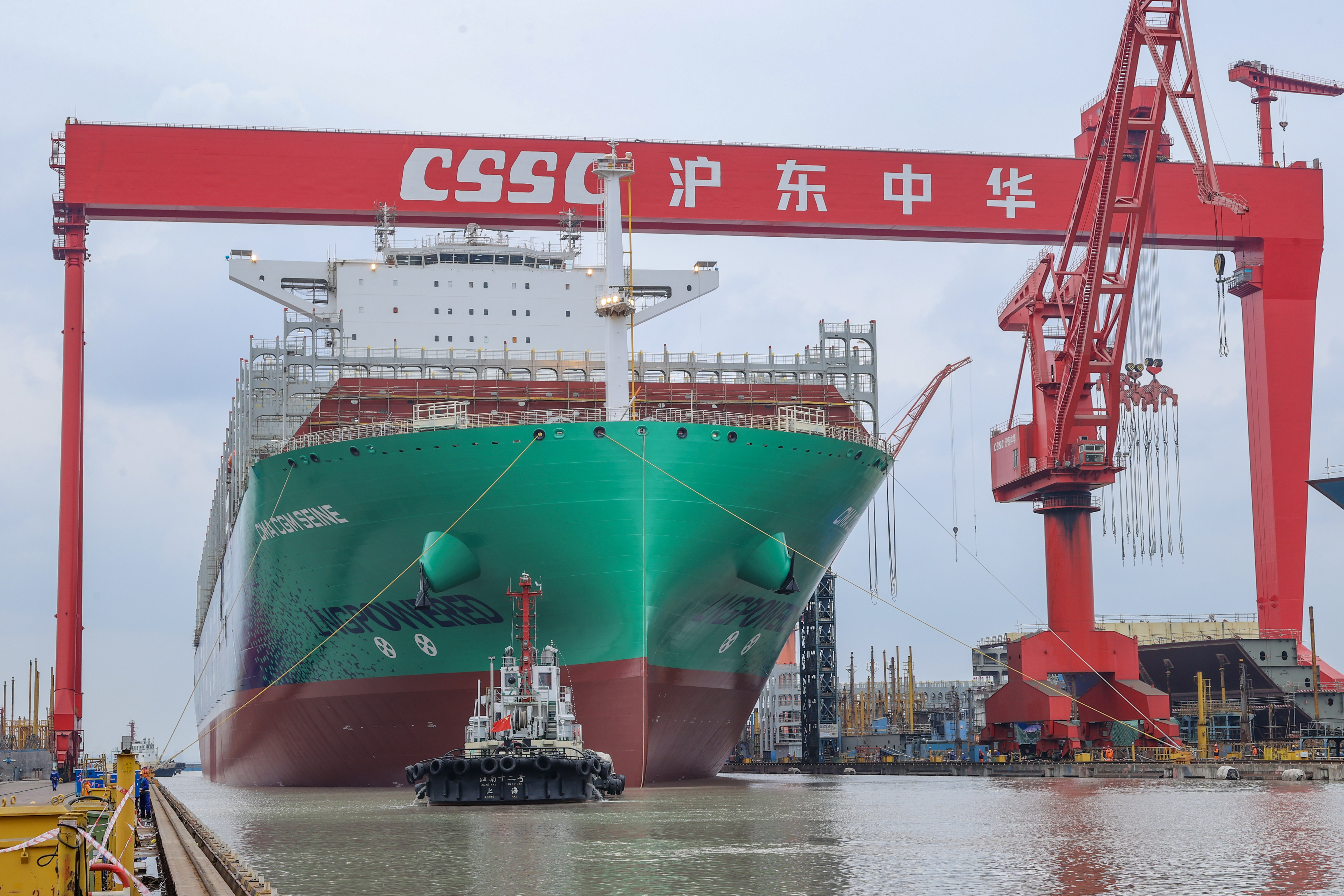 24000TEU级双燃料集装箱船出坞 本文图片 张黎 摄