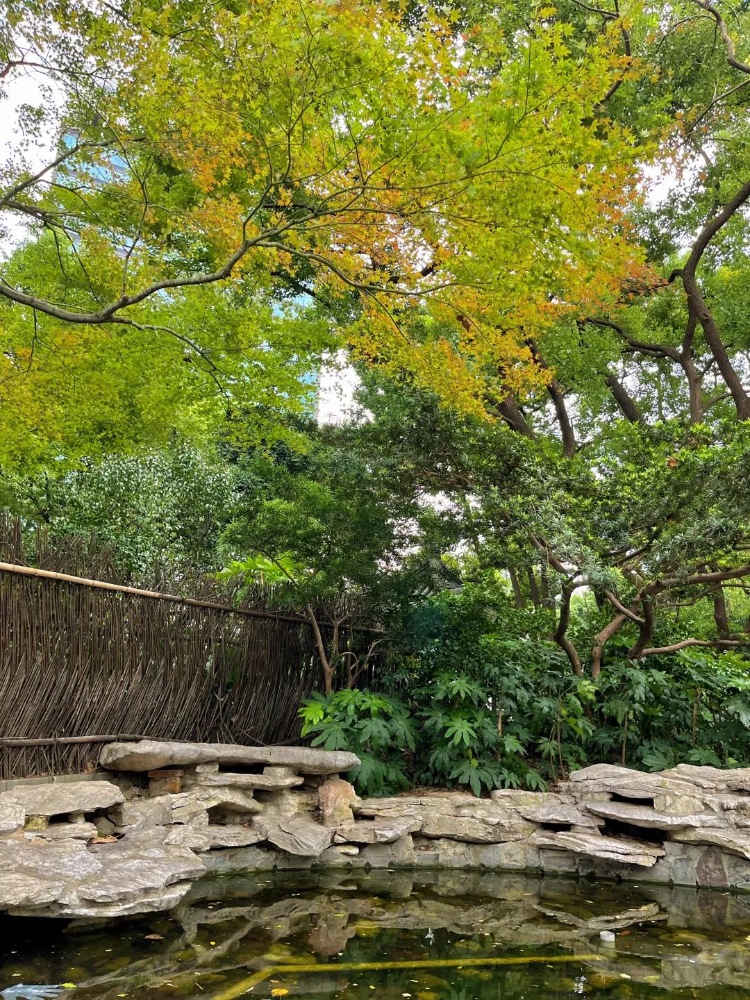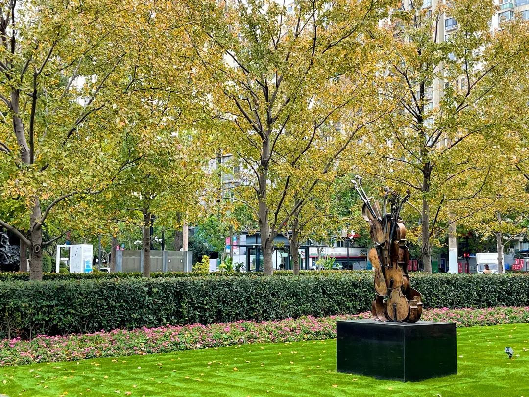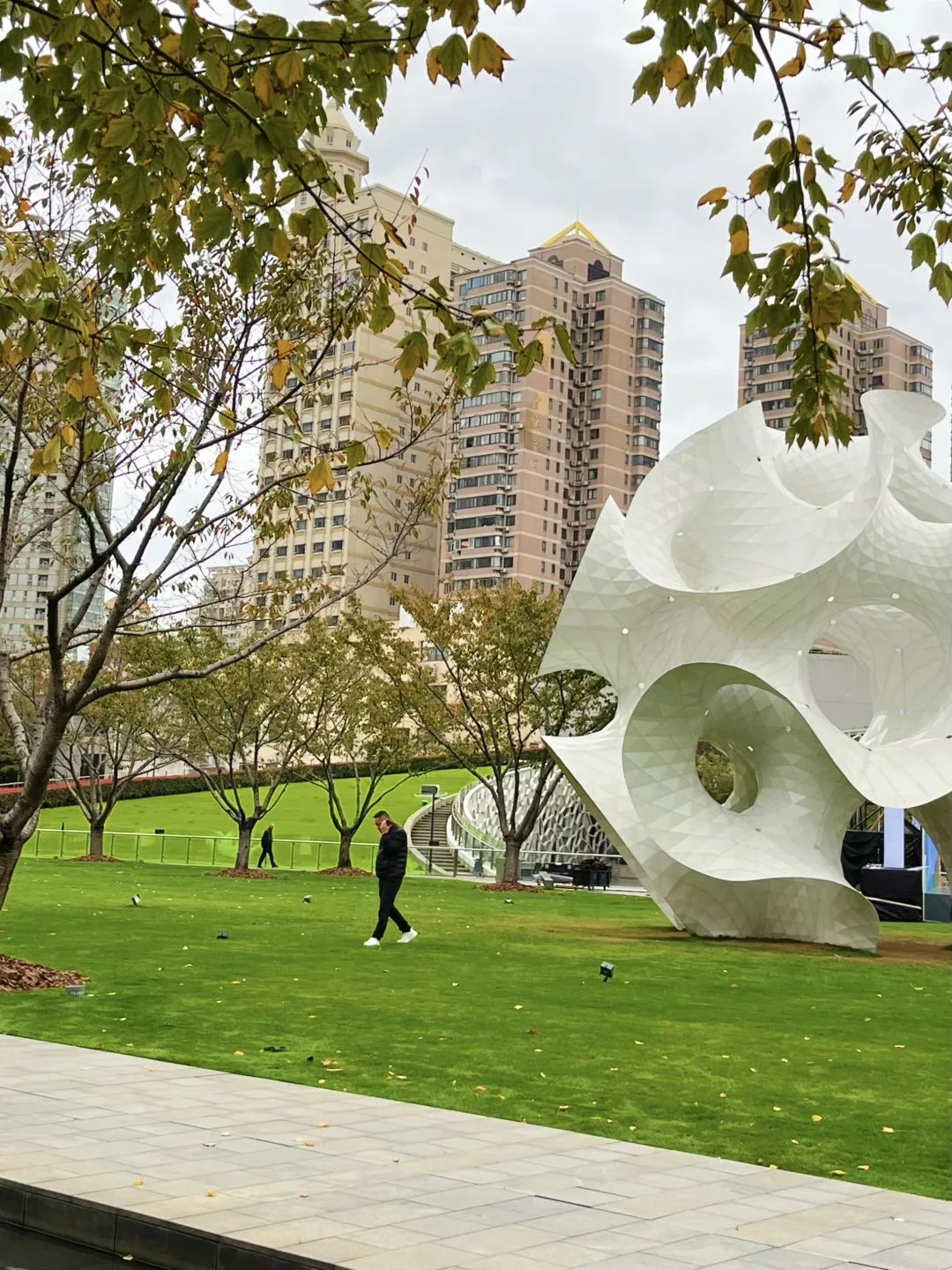 九月到十一月,静安雕塑公园展出雕塑的天然背景,从都市里的“绿野仙踪”变成了秋意斑斓的色彩。