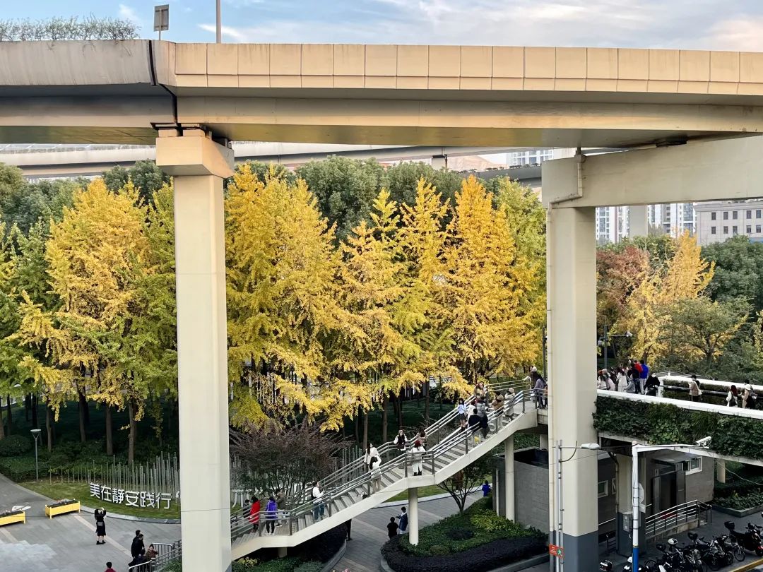 目前,汶水路站下静安中环公园所种植的银杏正在“上色”中,还需耐心等待大约半个月。不妨先来看看去年“火出圈”的美景,等到这里再次满眼金黄,静宝也会为你带来一手播报。