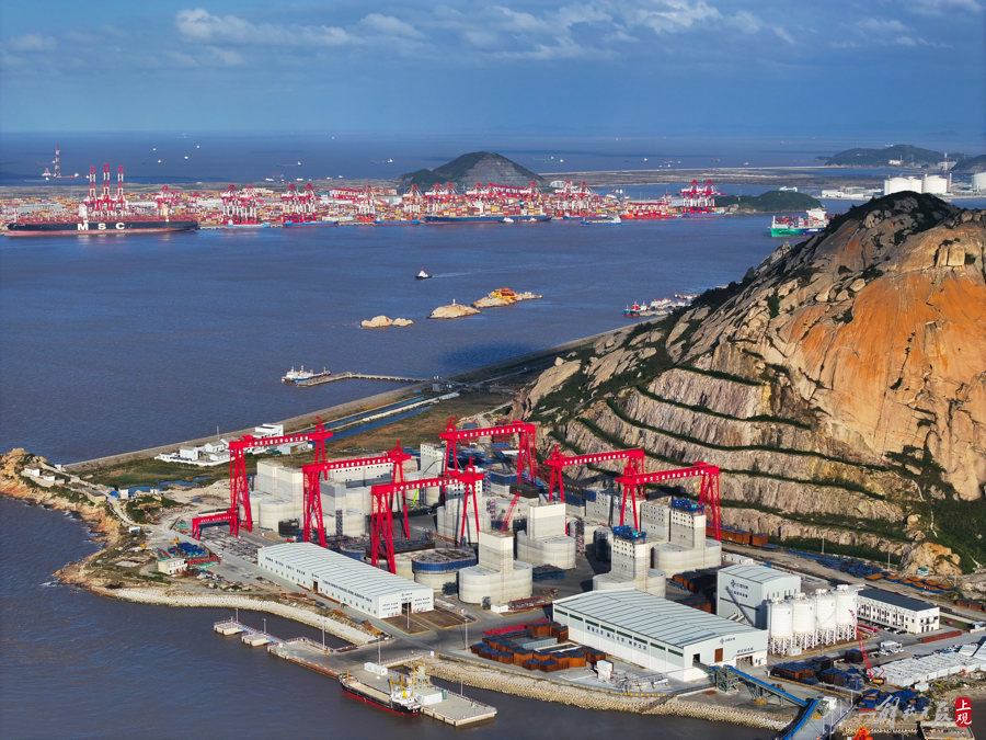 2024年11月19日,中交三航局为洋山港小洋山北作业区“量身定制”的桶式基础结构专业配套预制基地建成并正式投产,成功打通孤岛原材料运输通道,保障了小洋山北作业区桶式基础结构预制所需的原材料日常供应。 本报记者 张海峰 摄
