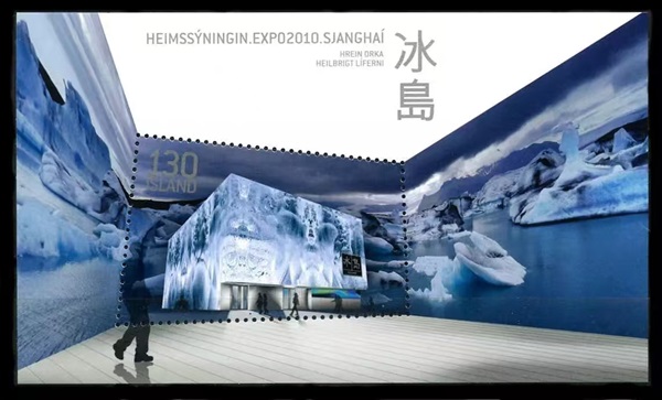 笔者也不例外,数次入园寻觅。冰岛的小型张是一枚不多见的异形邮票,其立体展示该国迷人的冰雪风光,笔者在馆里兜兜转转没有看到邮票,问了工作人员才知馆外有售,围着展馆转了几圈未见销售,突然看到墙角摆放着几台自动贩卖机,其中一台整齐排列着一个个塑料盒,里面装有一枚枚小型张,真是踏破铁鞋铁鞋无觅处,得来全不费工夫。如此售卖邮票还是第一回见。探究“世博邮旅”的故事尚有许多,有在立陶宛馆错失购买无齿邮票留下终生遗憾;有为了加盖世博邮戳,一日内跑遍园区所有邮局的艰辛;更有对世界各国、古今中外天文地理和风土人情的再学习、再认知,还有和志同道合的邮友在德国馆餐厅纳凉休憩时,呷着黑啤、啃着脆皮时的惬意。