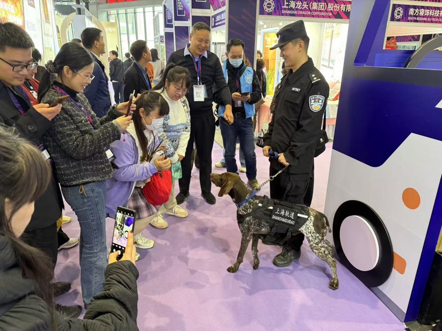 上海公安博物馆则带来一件不寻常的“展品”——一只身着“制服”的轨道交通警犬,吸引了大批观众驻足。尽管观众众多,这只警犬不仅泰然自若,还不忘“本职”,不时对观众进行“嗅探检查”。有观众感慨这届长三角文博会“闹猛”,从古老的历史到当下的生活,这些元素集中在一起,“劲头很大”。