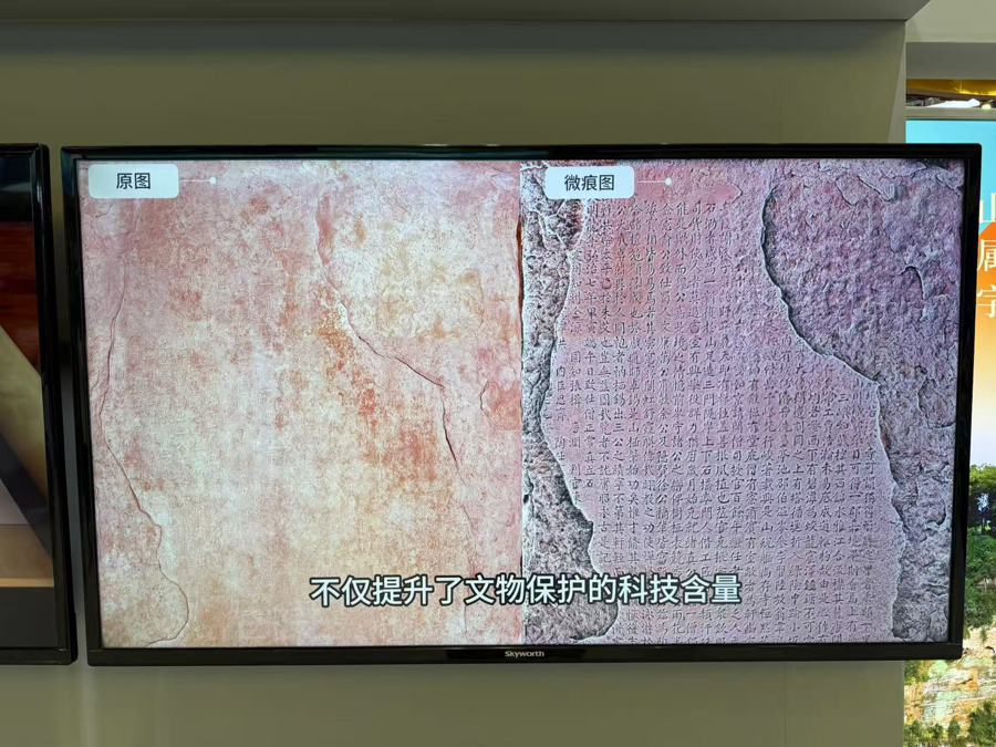 长三角文博会四川展区内,乐山大佛石窟研究院带来的乐山大佛附属造像文物数字化项目为还原文物原貌探索了新方式。这一项目在实施中采用微痕数据提取技术,提升文物上风化模糊的文字和图像辨识度。以项目中重点文物大象碑为例,常规影像图结合现场仅能辨识200余字碑文,从微痕提取图中已辨识出600多字。