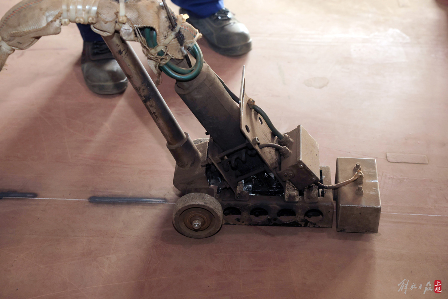 约有两成场景无法适用电磁矫平,传统火工矫平技术依然有用武之地,方卫民和班组成员持续研究改进。