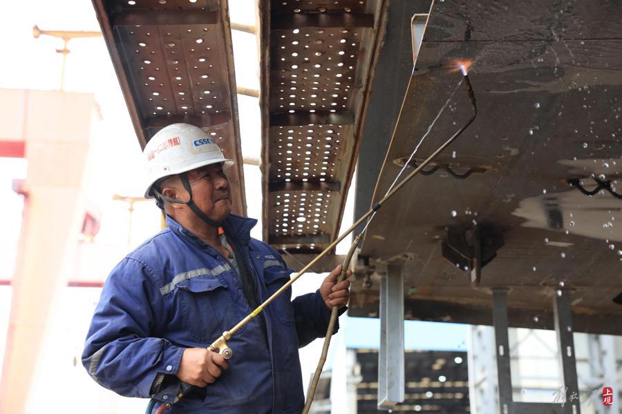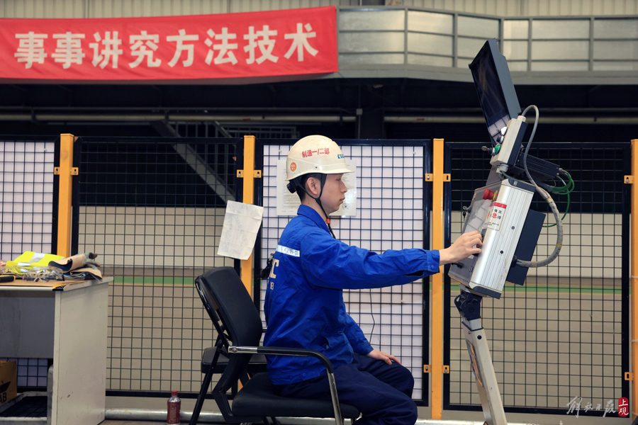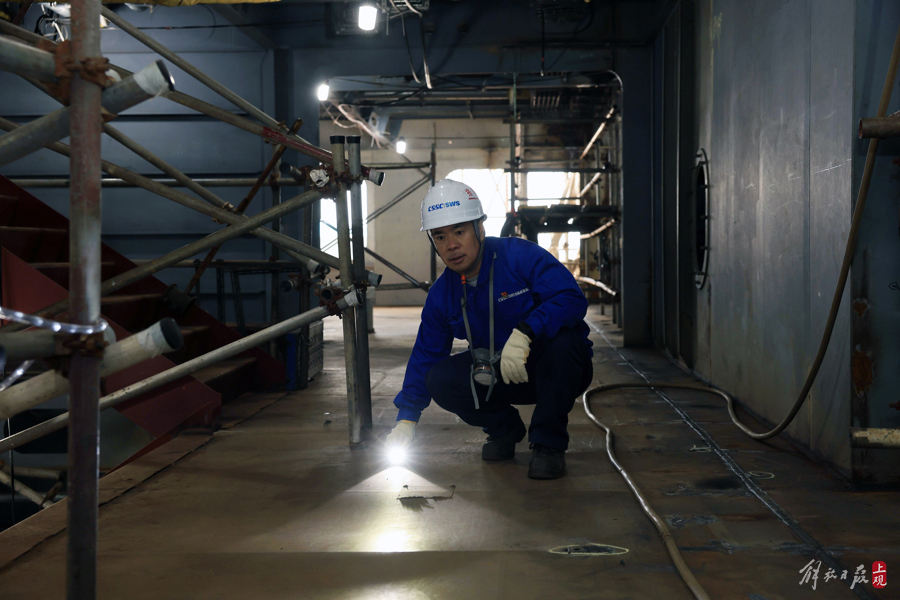 1991年,还在安徽徽州老家读高二的方卫民被上海求新造船厂招工来沪,结缘造船业。新世纪初,其作为技术骨干被抽调到新建的外高桥造船,从首船交付到如今全部船舶,都有他参与矫平的印记。