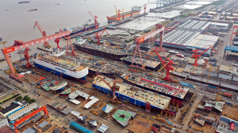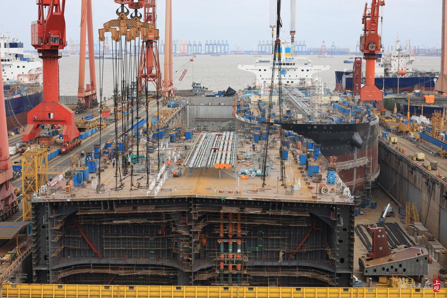 面向长江拥抱大海的外高桥造船,一艘艘“中国制造”船舶从这里驶向世界。