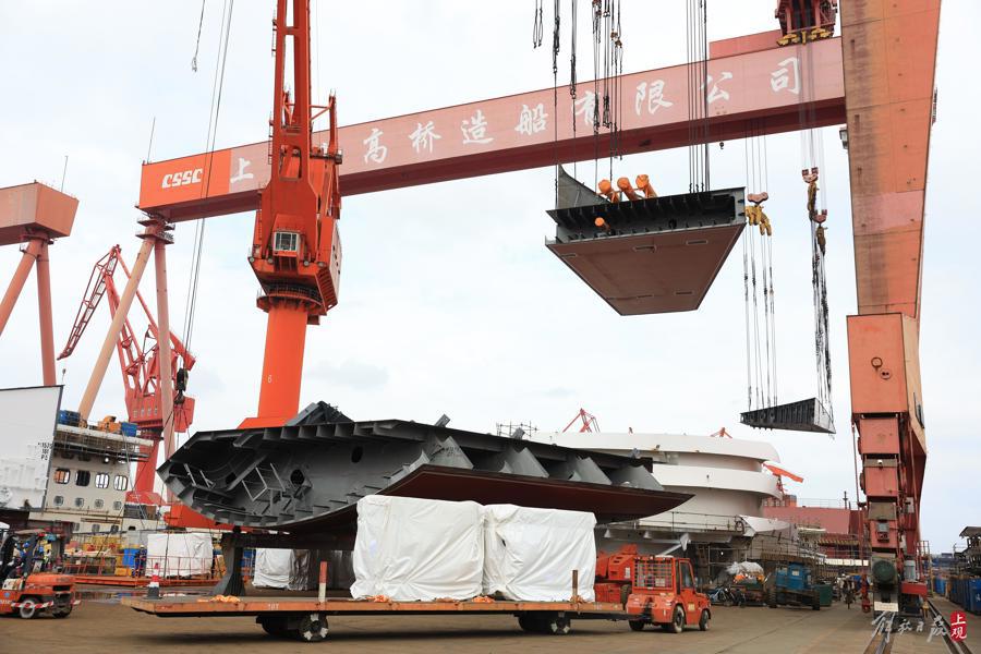 造船如同搭积木,精准高效的分段吊装是至关重要的环节。