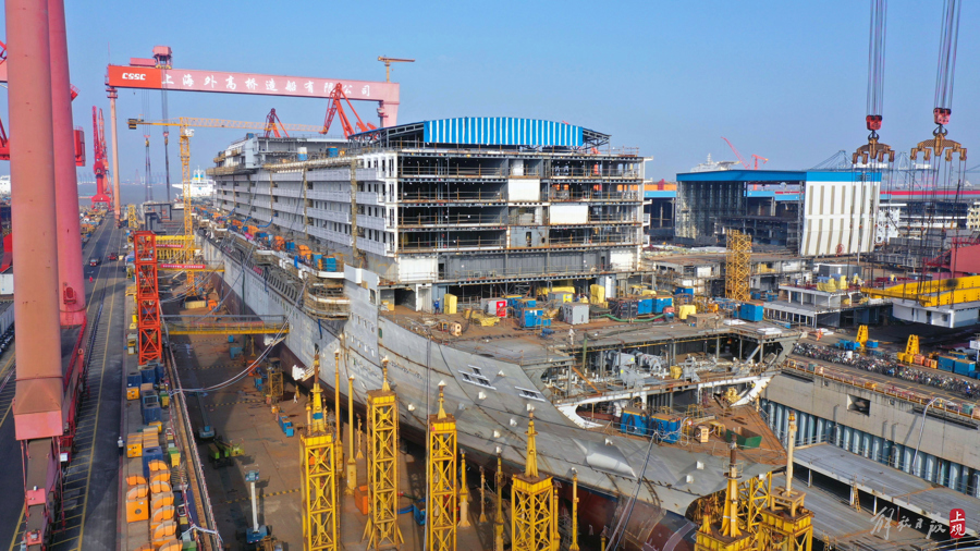 第二艘国产大邮轮,目前已完成搭建至五分之四。