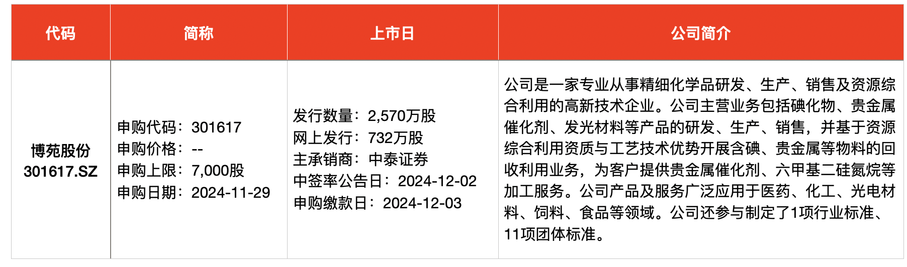 一,本周新股申购