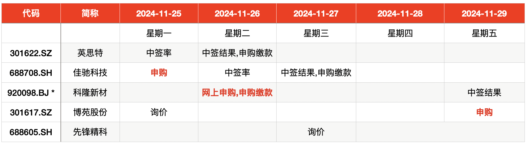 本周一,佳驰科技开启申购;而科隆新材、博苑股份则分别在本周二、五申购。
