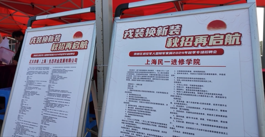为进一步拓宽退役军人就业渠道,实现用人单位与退役军人及随军家属就业需求的高效衔接,日前,“戎装换新装 秋招再启航”崇明区退役军人暨随军家属2024年秋季专场招聘会在崇明万达广场举办。