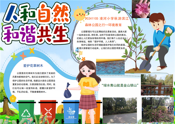 本次"赴绿色之约探绿色之美"滨江森林公园秋游项目化学习活动不仅让学生们学会了观察发现公园中的生态特点,并能通过实际行动宣传保护生态环境,同时在活动的过程中培养了合作能力、表达能力、学习能力和信息技术能力等多方面的能力,是一场特别的探索之旅。