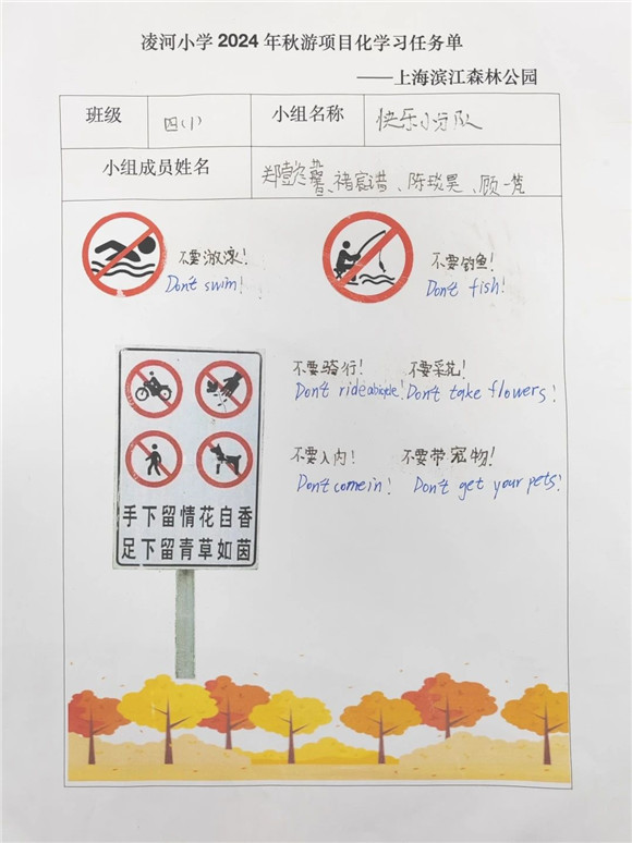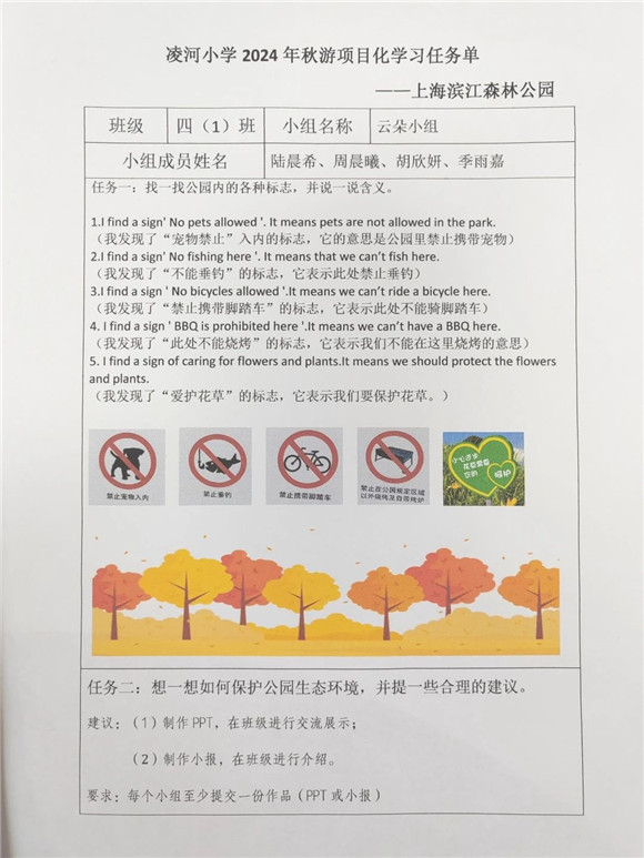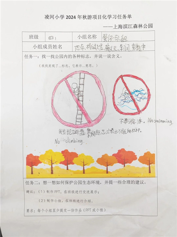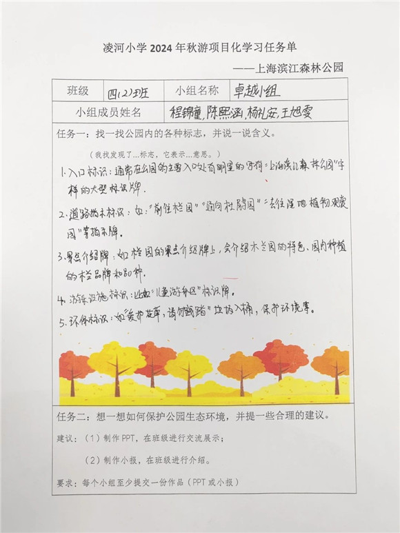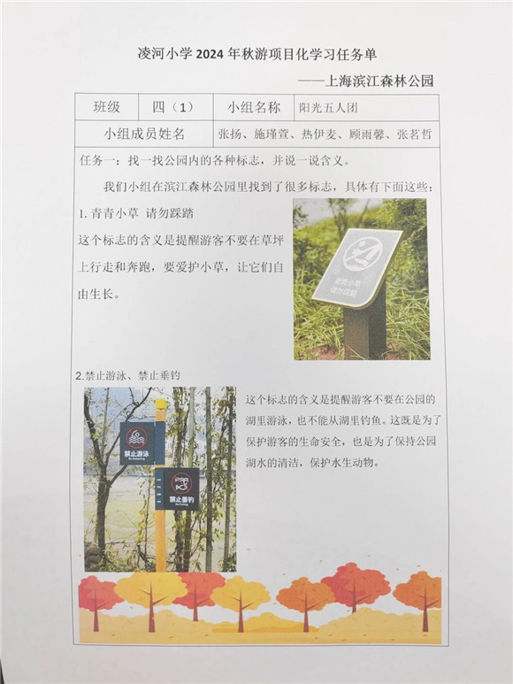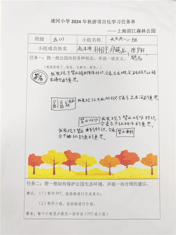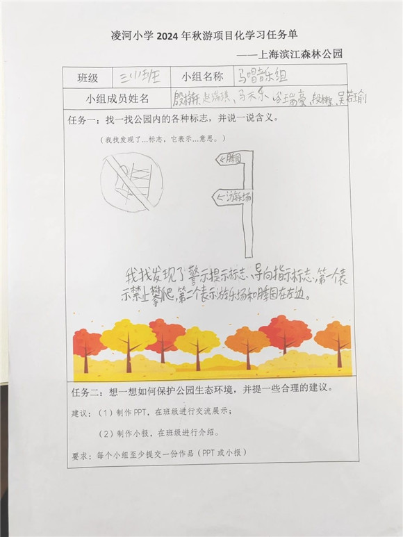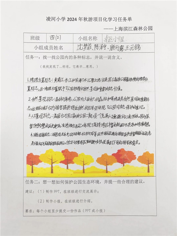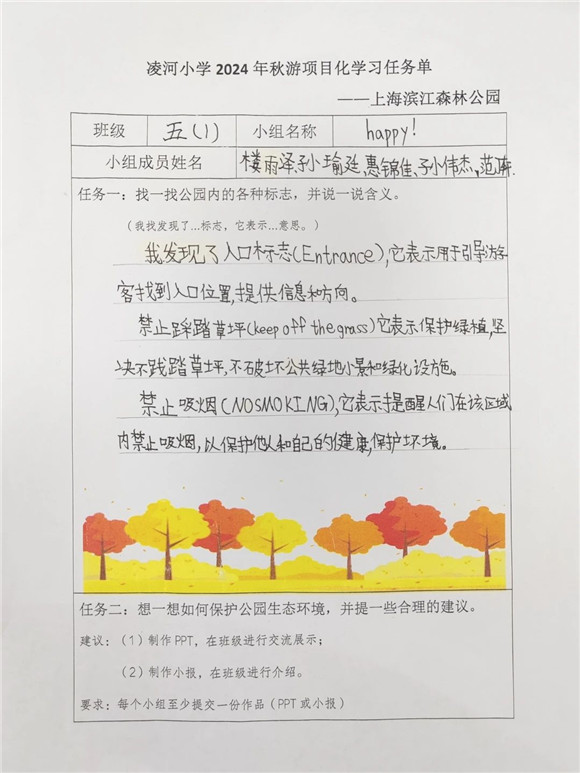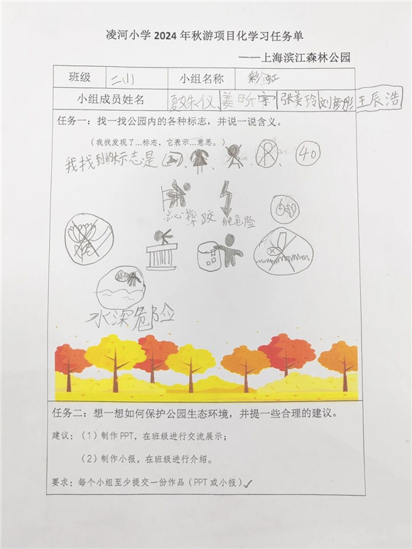 [浦东]凌河小学:赴绿色之约 探绿色之美——学校滨江森林公园秋游活动项目化学习