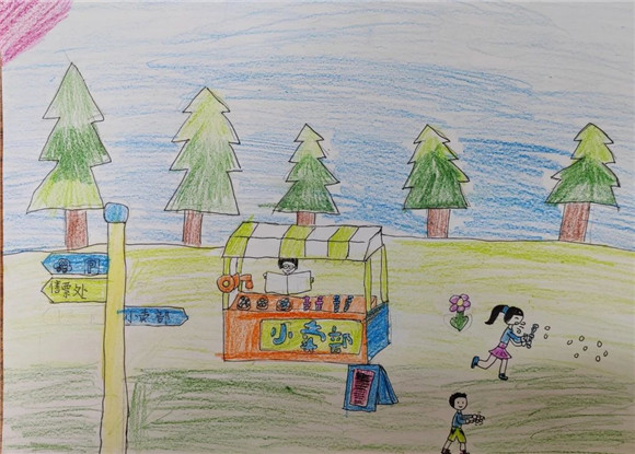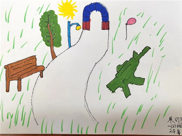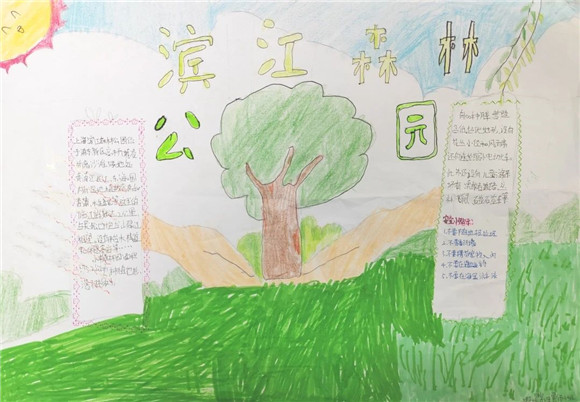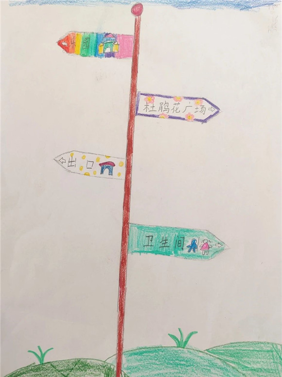 走进滨江森林公园,学生们围绕任务一到公园里找一找公园内的各种标志,并说一说含义进行了观察和绘画,找到了很多标志并了解了含义,为任务二的开展做了铺垫。