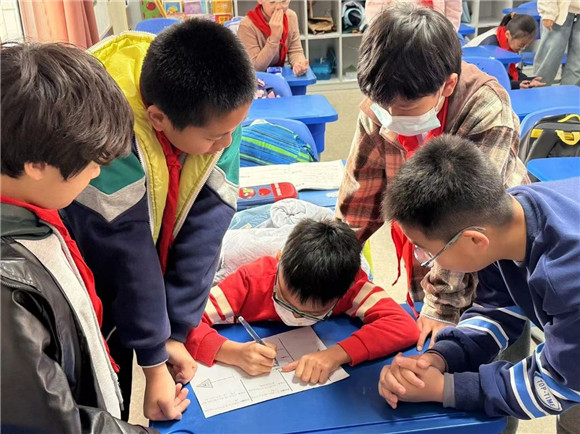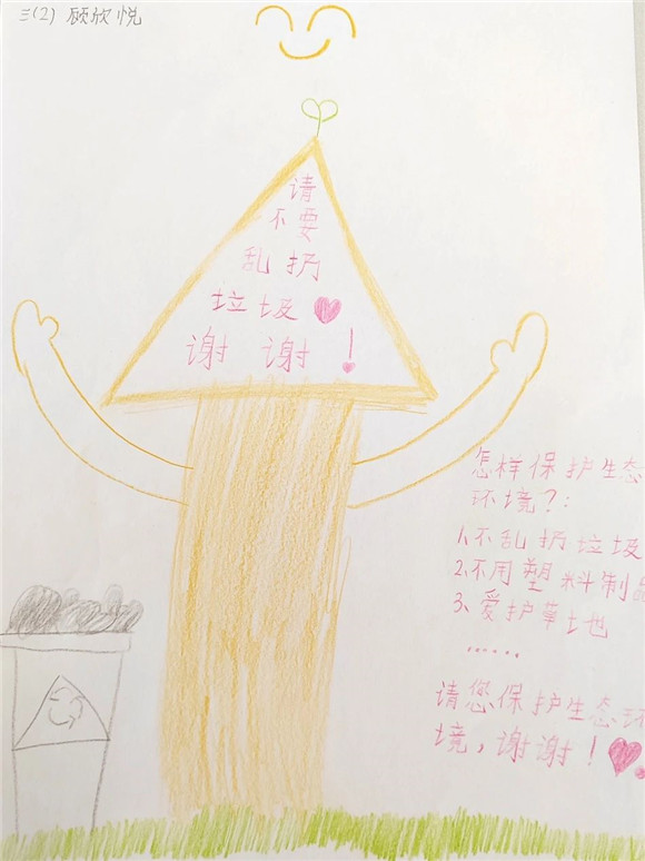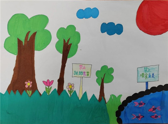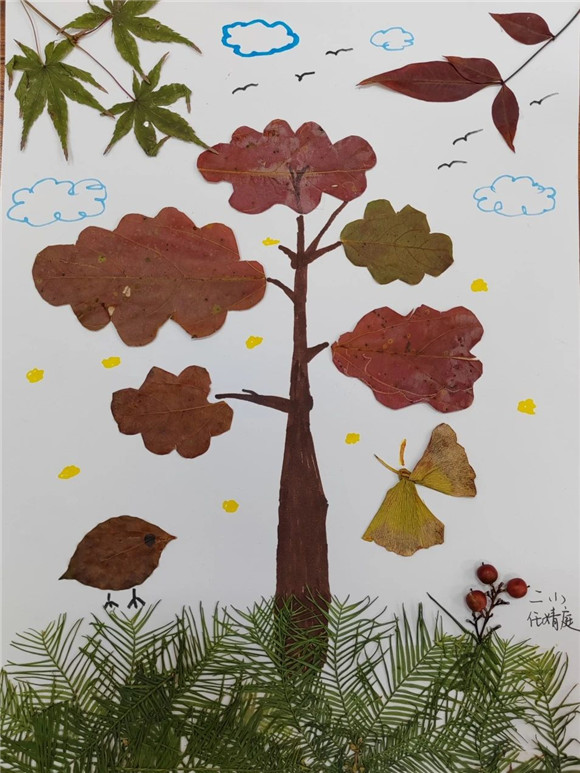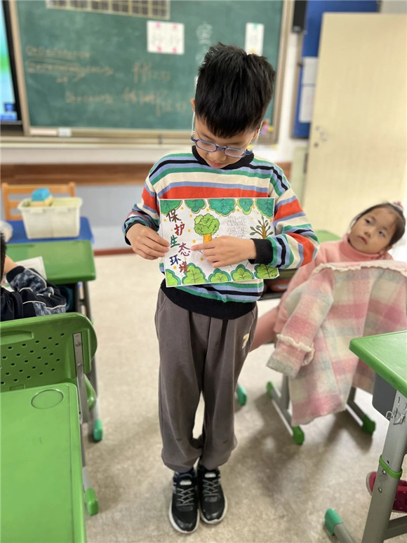 在完成任务二想一想如何保护公园生态环境并提一些合理的建议的过程中,学生们完成了许多创意的作品。四、五年级的同学们有的制作了保护环境小报、有的运用了信息技术制作了PPT在班级中进行演讲展示,倡议大家从自身做起保护环境,美化家园。三年级的同学们绘制了公园里的标志告诉大家哪些是不能做的,动员大家争做文明游客。一、二年级的同学们有的创作了公园里的拼音字母画、有的收集公园里的落叶创作了树叶贴画留住秋天的美。各班班主任和任课教师们也能结合自己所教的学科特点对学生进行指导,跨学科教学,如语文老师结合拼音教学让学生去寻找公园里隐藏的拼音字母,英语老师结合英语学科知识,鼓励学生用英语介绍看到的标志并制作宣传小报,科学老师带领学生一起探索植物的奥秘,美术老师指导学生进行艺术创作等等。大家的作品精彩纷呈。
