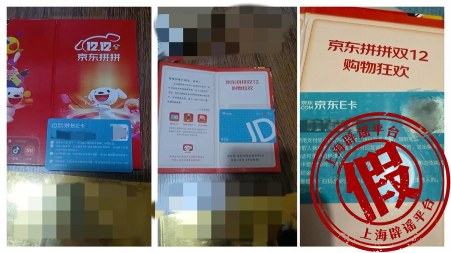 最近,有读者向上海辟谣平台反映,通过快递收到主题为“双12购物狂欢”的“京东购物卡”,需要扫码添加客服领取,但这份“礼物”没有具体的发件人,能够相信吗?经核查,这又是“免费送礼”陷阱。