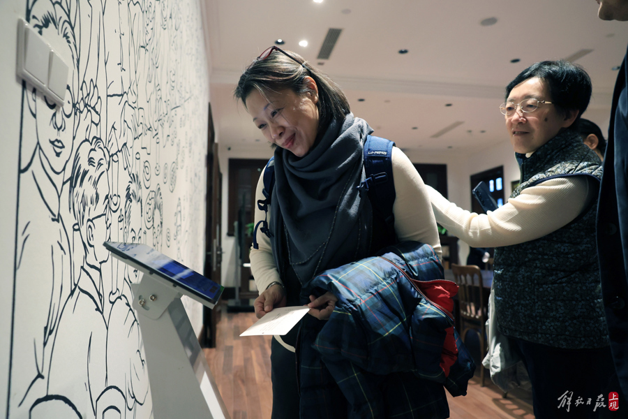 两位参观者在巴金“朋友圈”漫画中找到自己父亲充满欣喜。