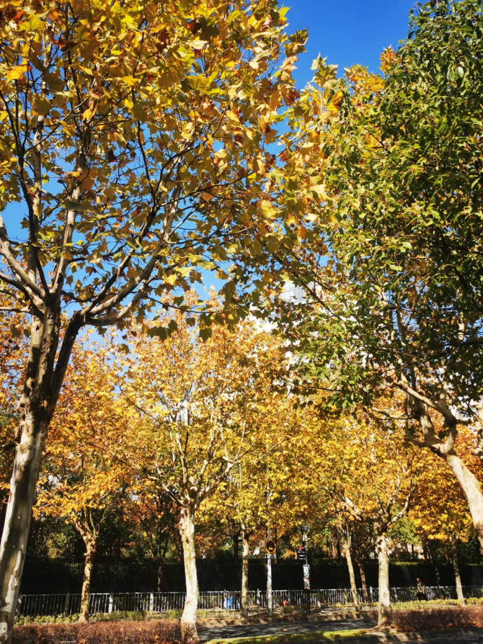今年,上海全市落叶不扫景观道共有46条,各区在去年的基础上,结合区域特点、历史内涵、建筑风格,做了精心挑选与优化调整,确保漫步街头的市民能体验到更高品质落叶景致。每条景观道树种不尽相同,包括悬铃木、银杏、栾树、北美枫香、无患子、白蜡、榉树、鹅掌楸等树种,风格各有千秋。