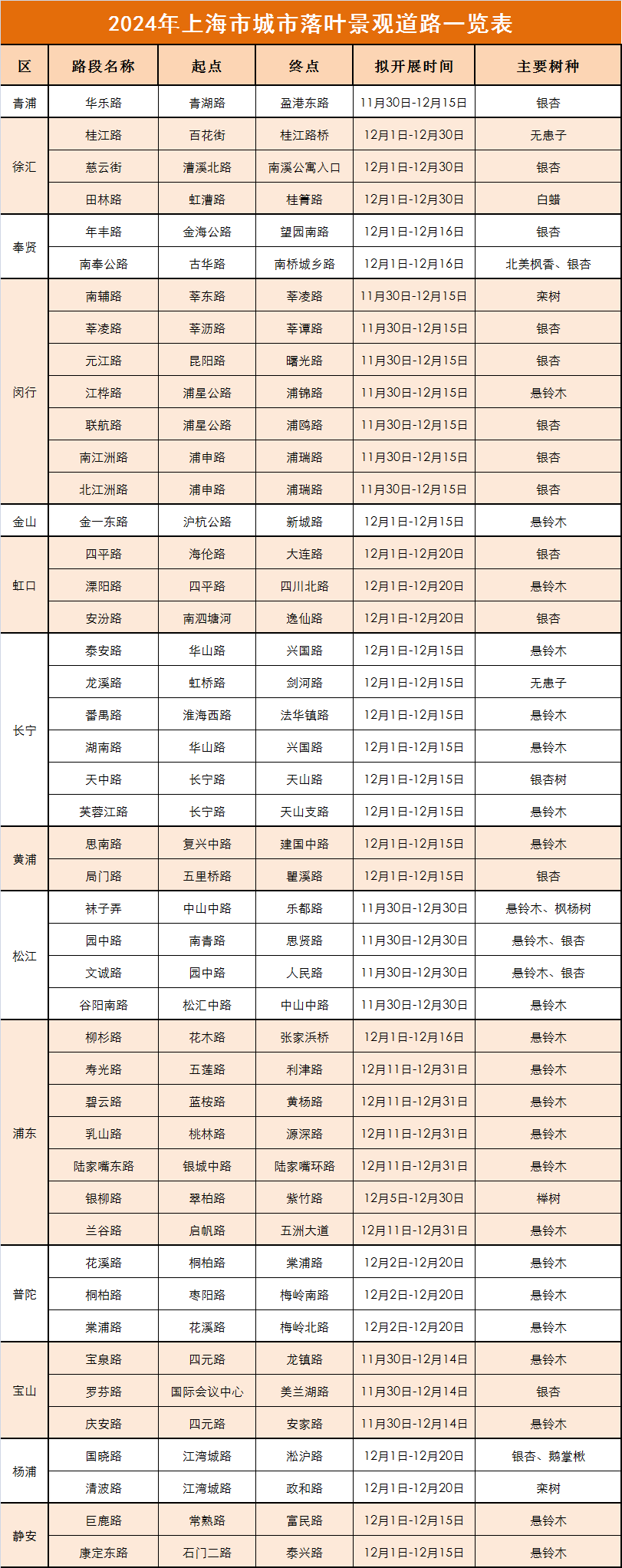 上海落叶景观即将“上线”,46个路段落叶不扫