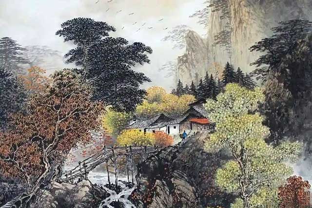 巨笔谁挥,密排一字,横空北雁南还。又渐远、蝉声唧唧,莺语蛮蛮。小园人幽径静,隔槛见、晚菊斓斑。遥相对,门外白云,云外秋山。