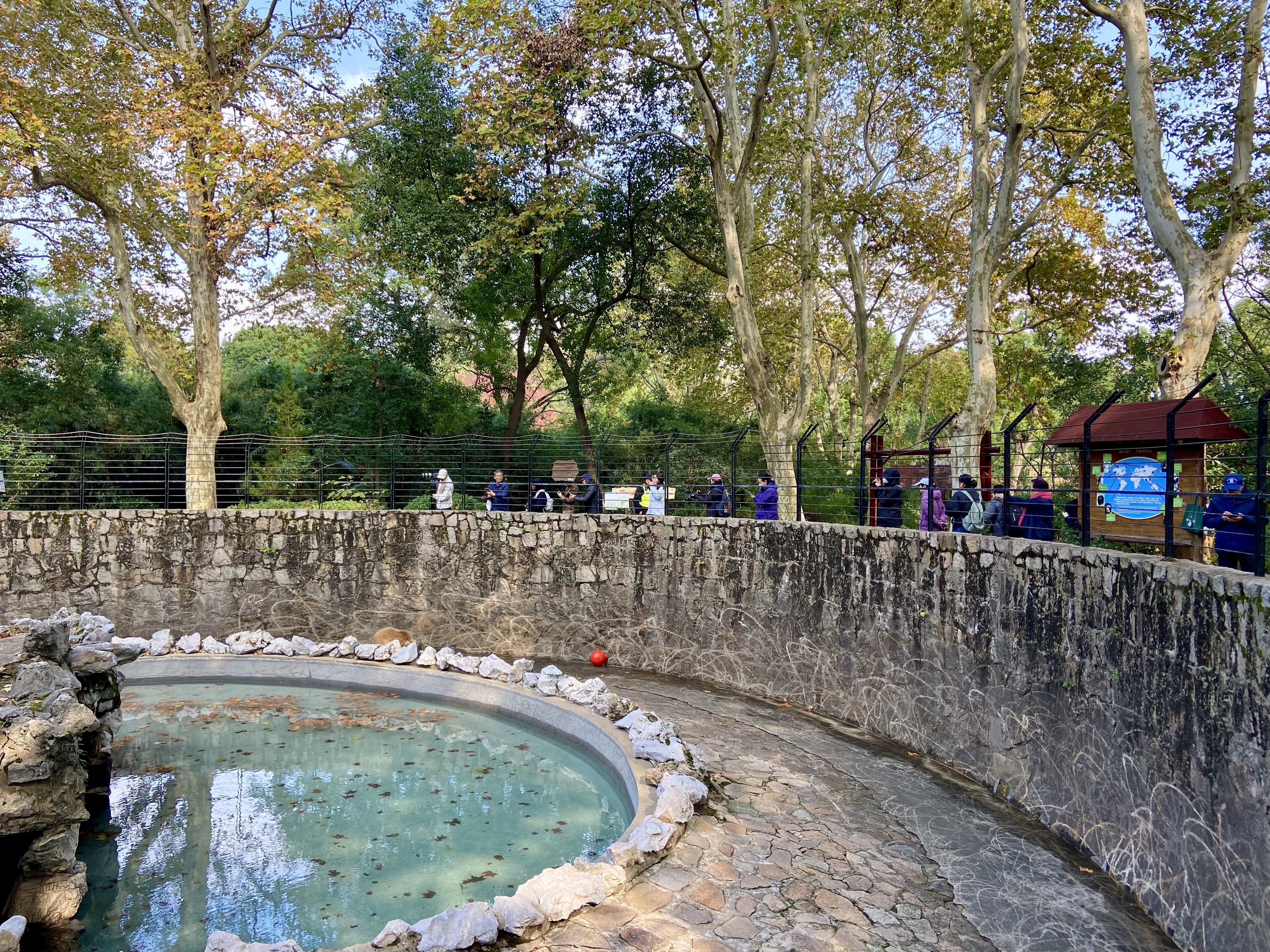 熊山是坑式展区,游客站在高处俯瞰动物。澎湃新闻记者 陈悦 图