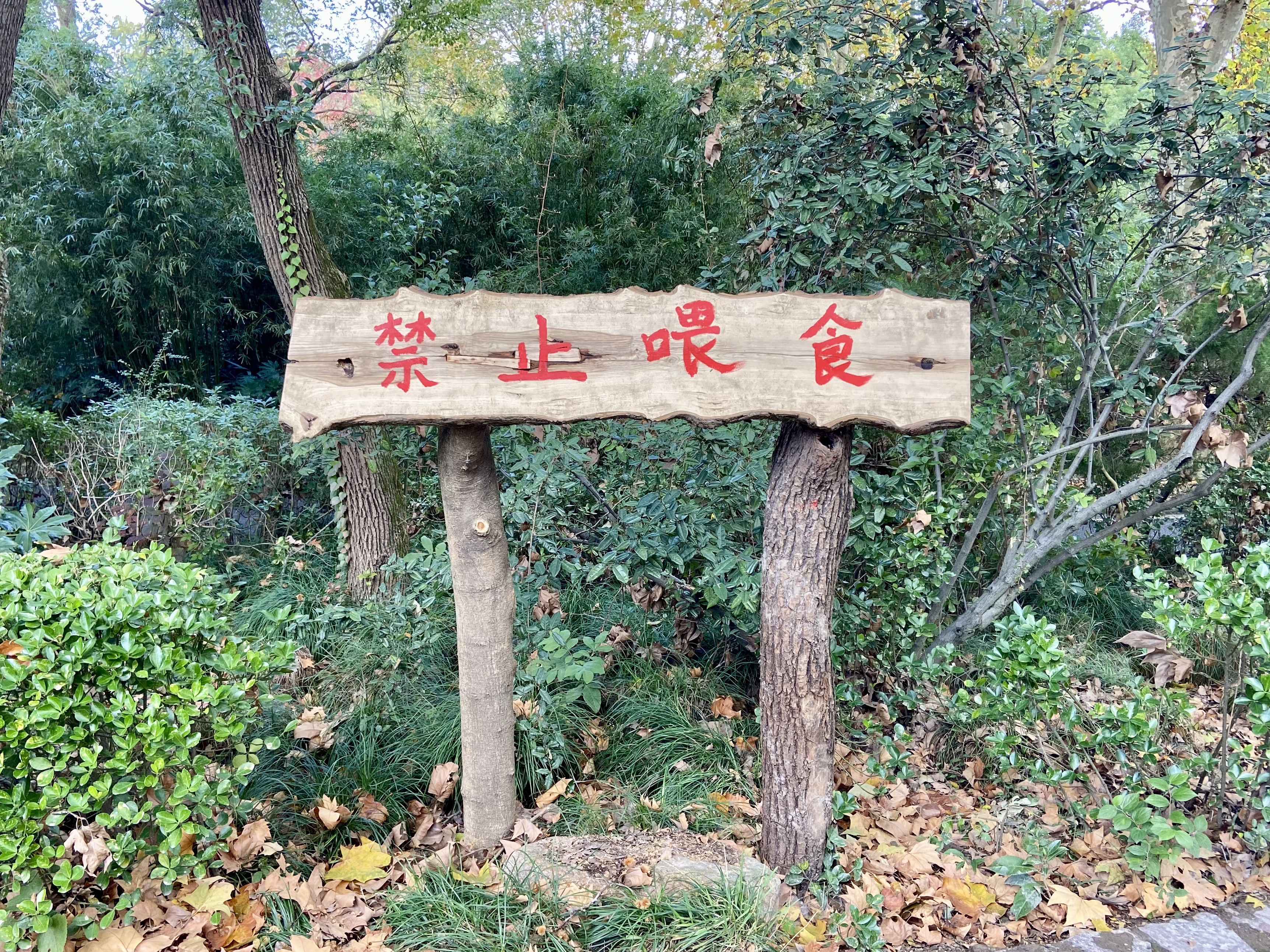 熊山展区设立标牌,提醒游客禁止喂食。澎湃新闻记者 陈悦 图