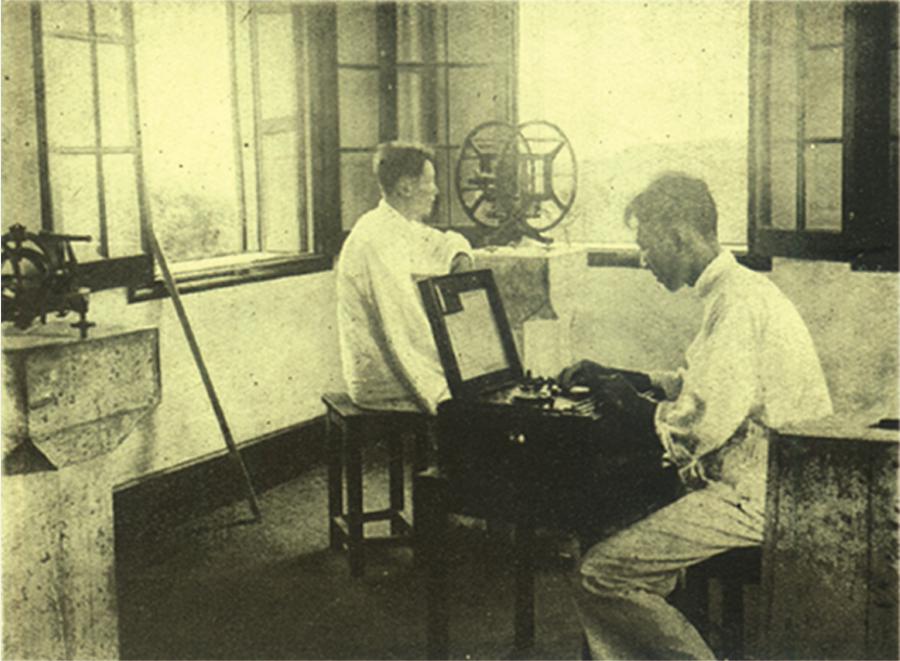 近100年前的佘山地震台工作照 上海市地震局供图