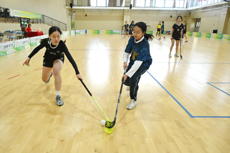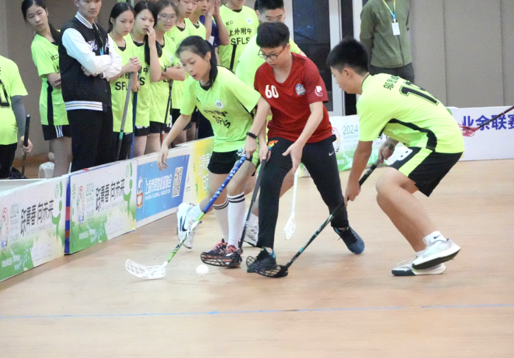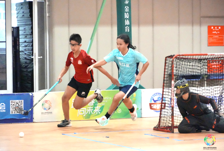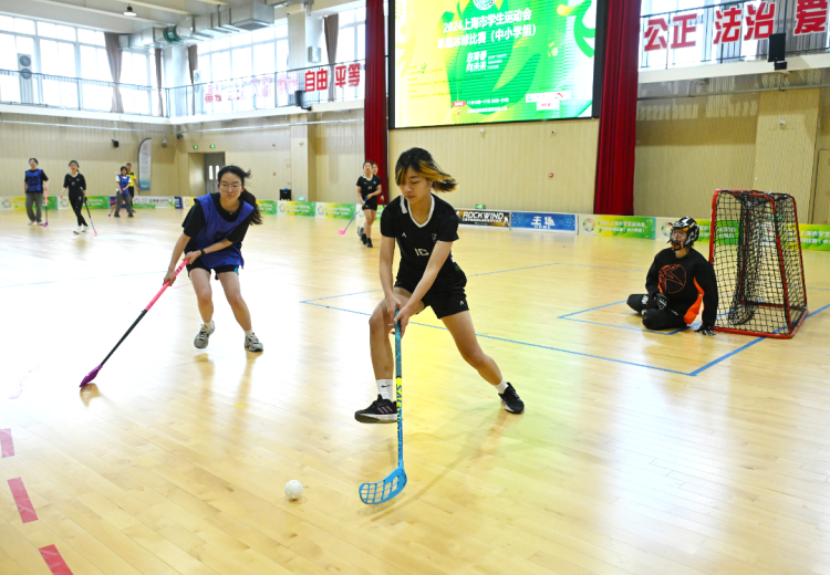 项目年轻,玩起来也是热力十足,快乐而轻松。在比赛地康桥实验小学体育馆内,两支队伍在挡板围出的场地内角逐,5名持球棍的队员和1名带着护具的守门员分出攻守防线,白色小球在队员的追逐击打中来回串蹦,让人眼花缭乱。