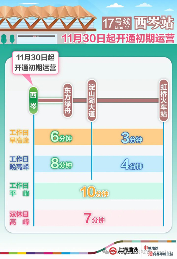 本周六起,上海地铁17号线东方绿舟站(不含)至西岑站开通
