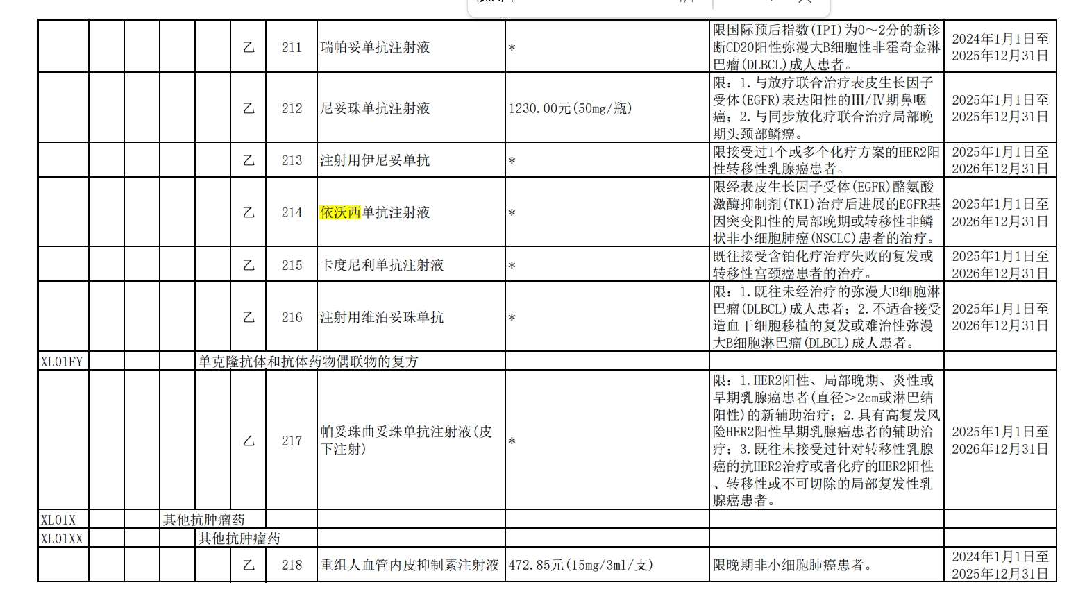 国内药企方面,康方生物旗下的开坦尼(卡度尼利单抗)和全球首创的双抗依达方(依沃西)均被纳入。今年5月,康方生物曾宣布,依沃西单药对比帕博利珠(K药)单药一线治疗PD-L1表达阳性的NSCLC(非小细胞肺癌)的三期临床试验获得决定性胜出阳性结果,达到PFS(无进展生存期)主要研究终点,具有统计学显著意义和重大临床获益。彼时,中国双抗头对头“打败”全球“药王”K药在国内医药行业引起极大讨论。