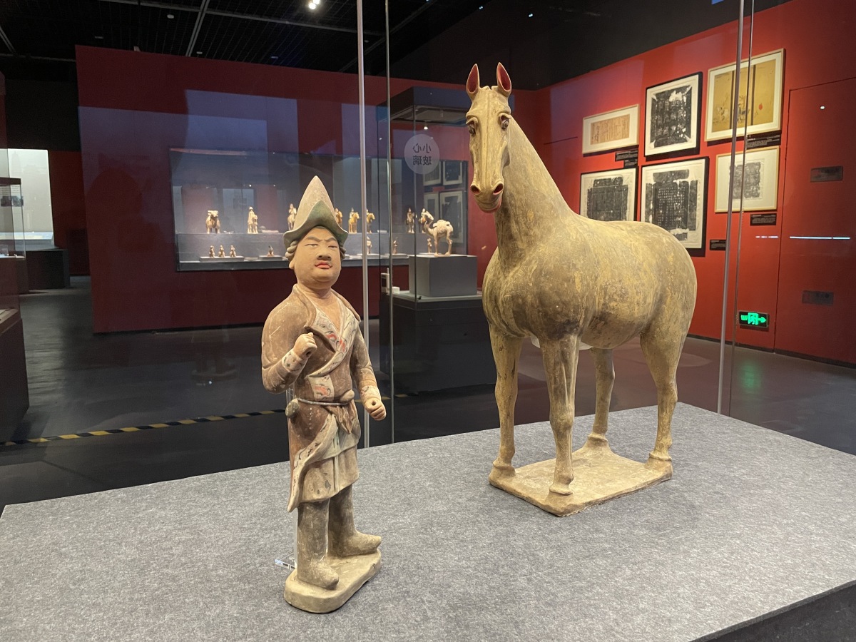 第二板块“丝路拓兴”聚焦于汉代的丝路盛景。今年是“丝绸之路:长安—天山廊道的路网”项目成功列入世界遗产名录10周年。本次展览中,借展了不少北方气象浑厚的汉唐文物与江南文物的清秀之美形成对比。