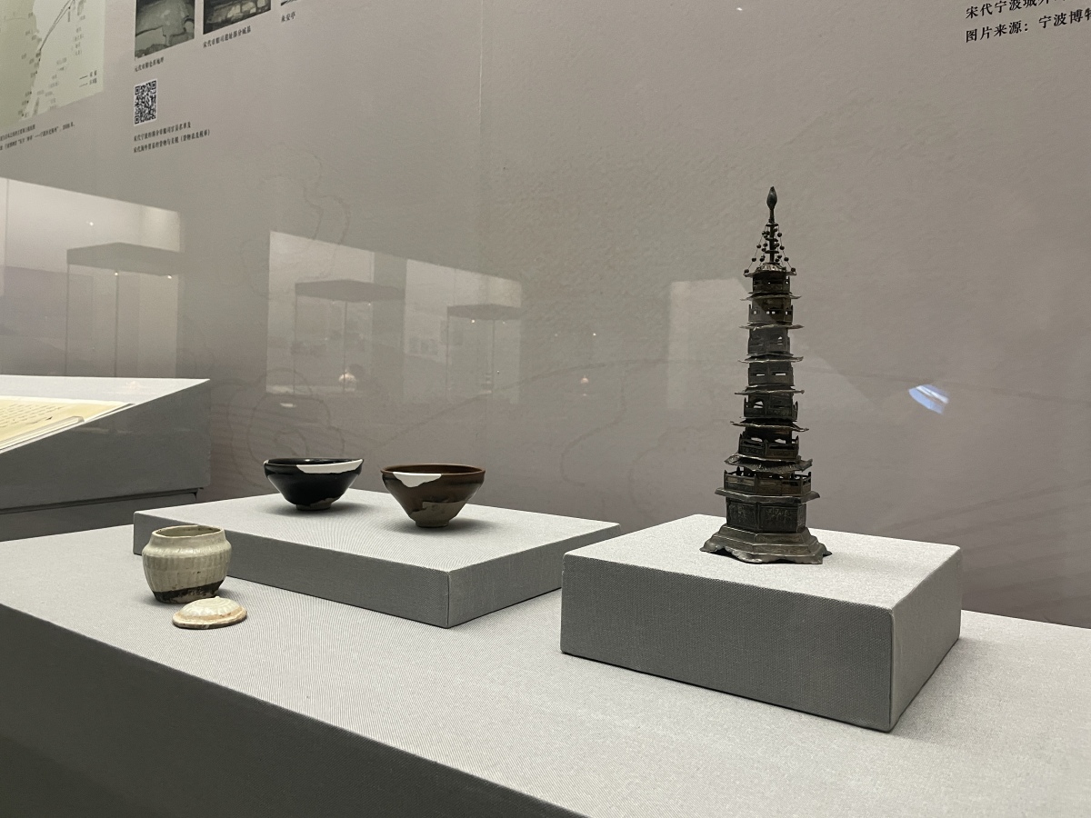 而该时期的宁波,以境内的四明山为名,被设立为明州,并据山海之利,成为中国对外交往的主要门户。宁波天宁寺遗址出土的唐代建筑残件、天封塔地宫出土的唐代佛像,以及越窑青瓷在唐五代鼎盛时的器物(法门寺地宫出土的秘色瓷),都是该段历史的见证。宁波与西安丝路双城,也因为日本遣唐使的登陆访问,经大运河“串联”起来,共同讲述中外交流交往的故事。