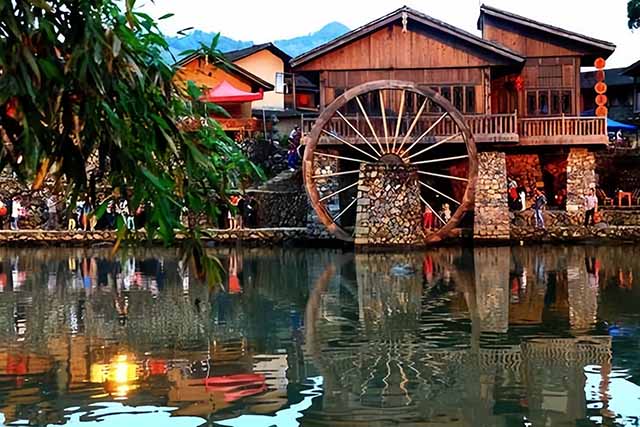 古道旁溪水缓缓地流过,跨过石头砌成的小桥,我看到了《云水谣》电影中的标志性物件——一架古老的大水车。千百年来它不停地转动,不停地唱着古老的歌……(徐琏)