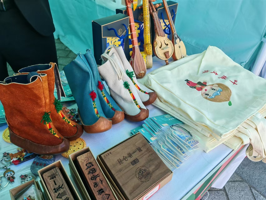 在上海-喀什文旅投资促进大会上,叶城文化旅游推介官亚力昆·阿布都米吉提现场推介了叶城县的文旅亮点,活动一结束,他就赶往文化市集,为众多文创产品现场带货:“这种给小朋友穿的手工牛皮靴是我们的自治区级非遗;这些核桃木制作的餐具有个好处,可以隔热;这些乐器文创的原版是我们家里必备的,迎接客人时,一定要弹,我的父亲也会弹……”亚力昆·阿布都米吉提表示,能借沪喀文化周的机会把家乡产品零距离向上海市民介绍很兴奋,“现在沪喀两地在文旅方面有很多合作,许多上海的文化工作者会去我的家乡深入了解普通维吾尔族家庭的风俗习惯。”