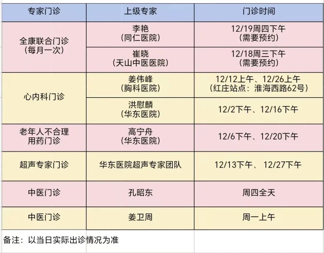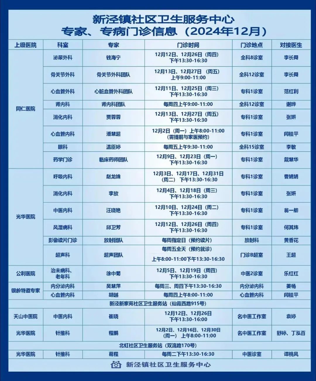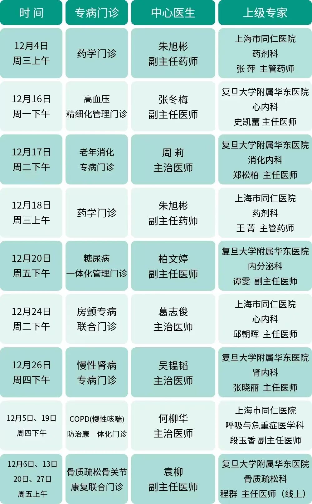 如今在长宁,走进家门口的社区卫生服务中心就能享受到二、三级医院的优质医疗资源。全区10家社区卫生服务中心12月的专家门诊表来啦~