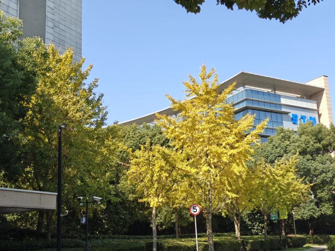 在IBP国际商务花园一期的入口处,有几棵颇为漂亮的银杏树。在秋天从绿色变为黄绿,再到通体金黄,金色的树和蓝色的天空相得益彰,似乎在告诉我们:美好的时光犹如黄金般珍贵。