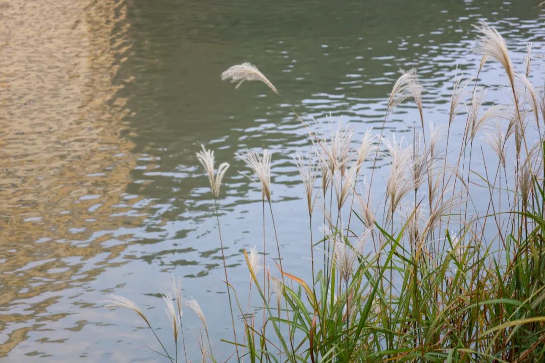 秋草也是秋日的一道独特风景。 在临空滑板公园,你可以看到各种观赏草,它们长长的花序在江边摇摆,呈现出不畏秋风的潇洒姿态,本性似有野草一般的坚韧。草,依然是一道不平凡的风景。