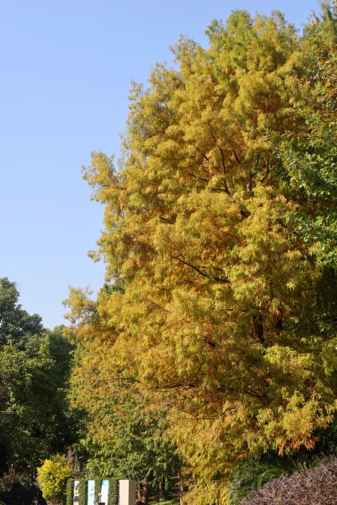这里曾经是上海规模最大的园圃之一——北新泾园圃,现在依旧遍布绿化。附近的森星高尔夫球场旁也有一条杉树道路。秋天会变色的杉树有水杉、池杉、落羽杉等,会根据品种的不同和温度的变化变成红色、橙红色、红褐色等色彩。