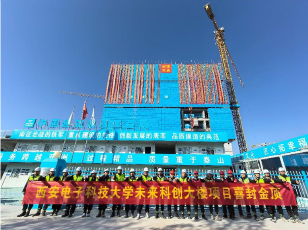 近日,由中建八局西北公司承建的西安电子科技大学未来科创大楼项目主体结构顺利封顶,以匠心拓展幸福空间,用实力兑现履约进度。