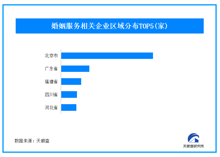 天眼查专业版数据显示,截至目前,我国现存婚姻服务相关的企业有2.2万余家。从地域分布上看,北京市、广东省和福建省婚姻服务相关企业数量位居前列,分别拥有8000余家、2400余家、1700余家;从成立时间来看,超四成的相关企业成立于1-5年内,成立于1年内的相关企业占比17.73%。