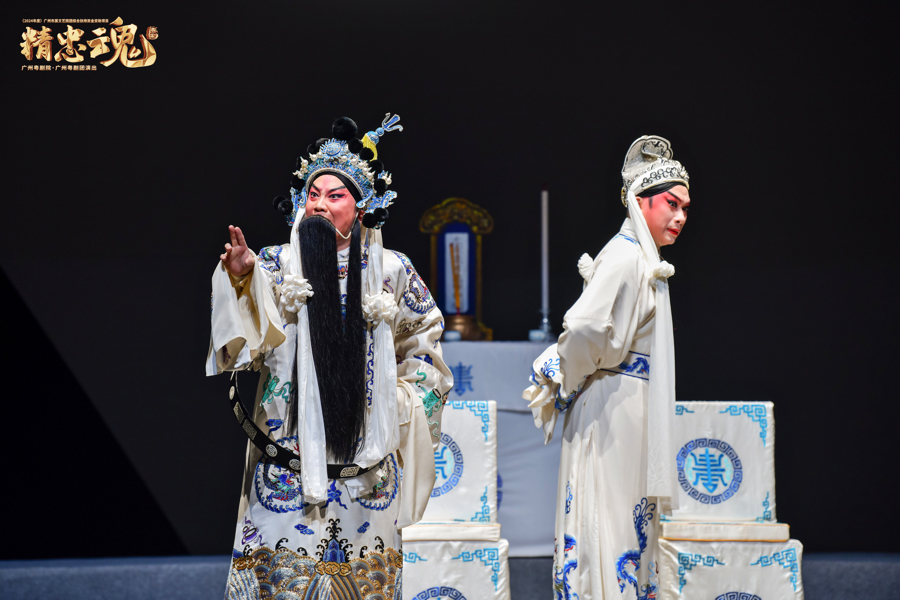 12月4日晚,根据岳飞抗击金兵的历史创作的广州粤剧院《精忠魂》登陆上海天蟾逸夫舞台。李伟骢饰演岳飞,陈健超饰演赵构,角逐上海白玉兰戏剧表演艺术奖主角奖和配角奖。