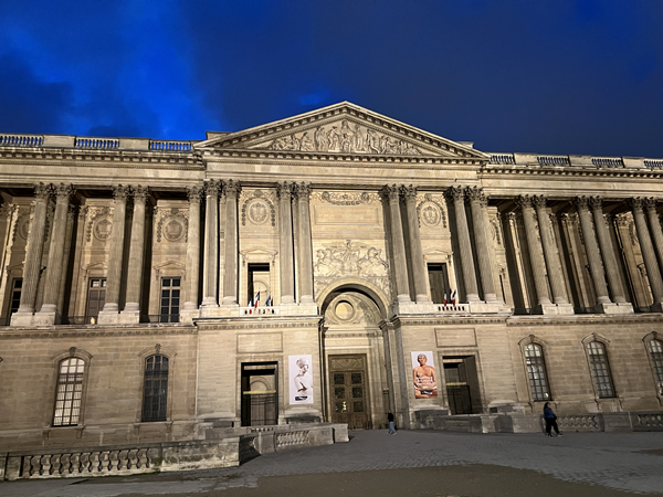在巴黎的第一天,其实,收尾还挺文艺的。那天吃完晚饭,准备坐大巴回去了,一路跟随着去找大巴,也不知身处何处。正好看到一处建筑,外立面看着很厚重,在灯光的照耀下,夜晚的天空呈现出了沉静的蓝,又反衬出建筑物的庄严韵味。后来,白天再经过时,才发现,其实那里是卢浮宫的一处侧面。这的确是一种奇妙,巴黎式的奇妙。(文/陈佳勇 图片由作者提供)